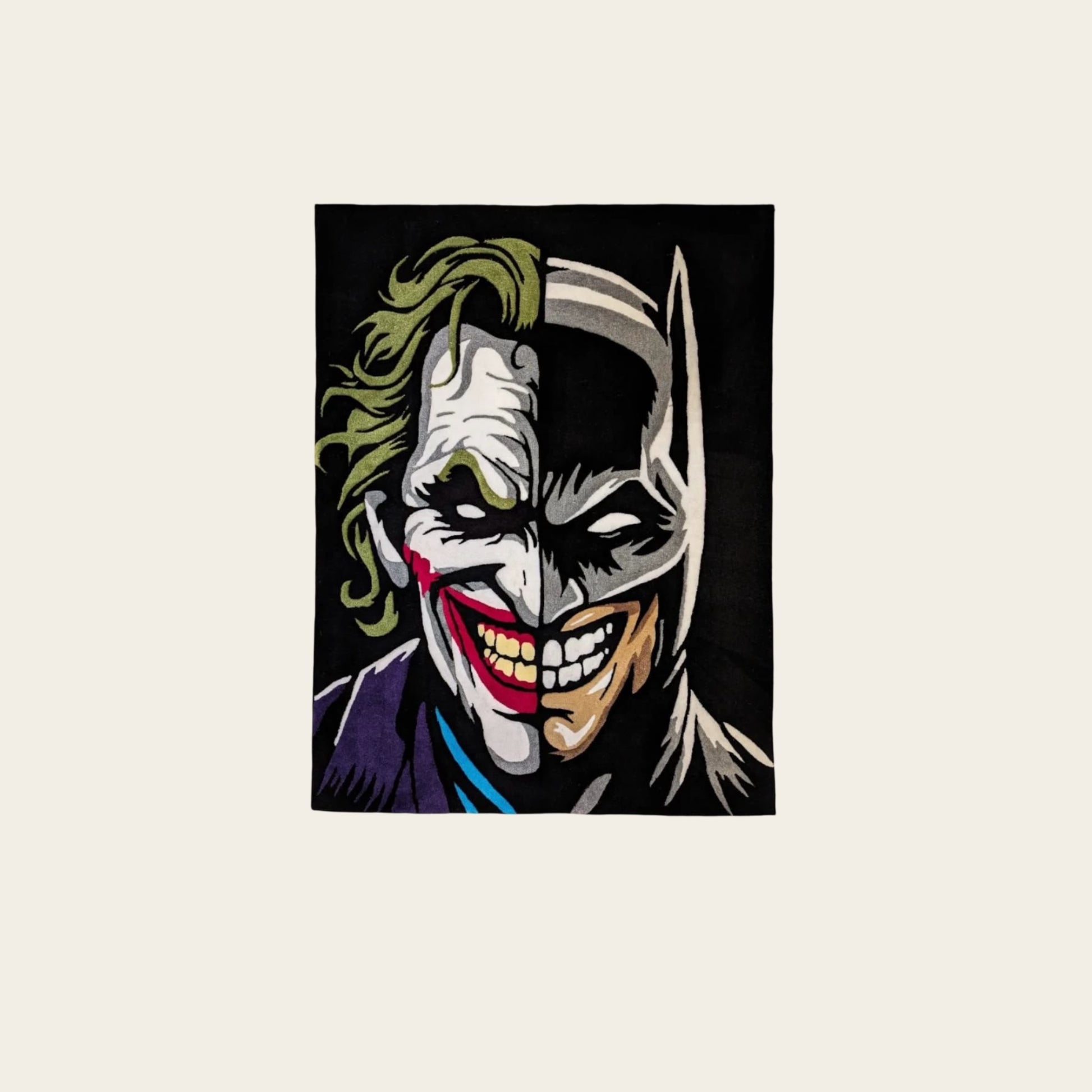 Step into the world of Gotham with this striking hand-tufted rug inspired by the eternal clash between Batman and the Joker. A bold, cinematic piece that captures the fine line between chaos and justice perfect for comic fans, collectors, and interior design enthusiasts looking for something truly iconic.